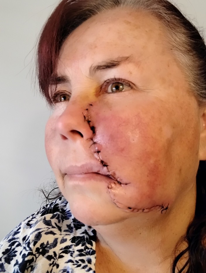 A subtle change in the colour and texture of the skin near Alicia Taylor’s mouth didn’t ring alarm bells for her or her GP. Note: This post includes a post-treatment image (stitches) following skin cancer removal.